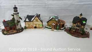 Lot #0215: 4 Lighted Christmas Village Ceramic Houses
