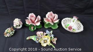 Lot #0094: 6pc. Italian Fine Porcelain Floral Sculptures