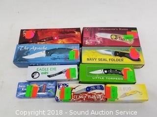Lot #0130: 9 Frost Cutlery Folding Pocket Knives