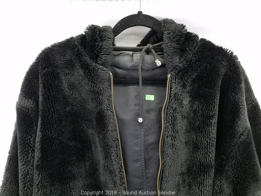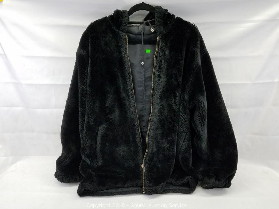 Lot #0260: Black Plush Reversible Full Zip Hooded Jacket -XL?