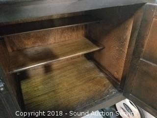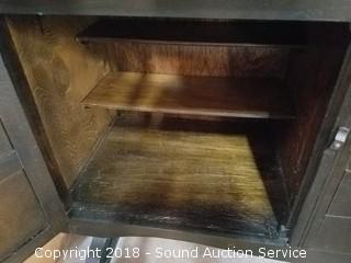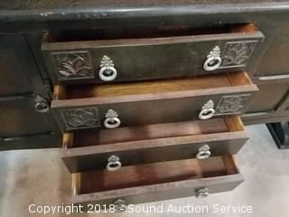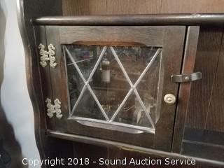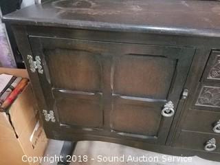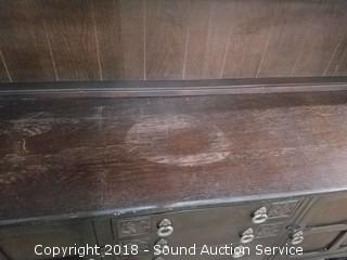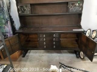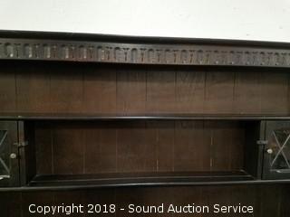 Lot #0015: Dark Oak Tudor Reproduction Sideboard w/Hutch