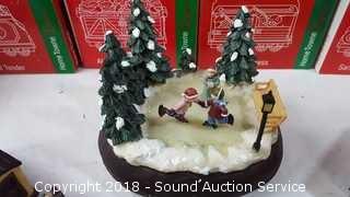 Ceramic. You get 12 pieces, all are in original boxes. Circa late 1990's. Various train cars and hometowne skating rink. Refer to photos for complete list of titles.