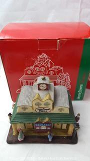 Ceramic. You get 12 pieces, all are in original boxes. Circa late 1990's. Train cars, Hometowne Depot, and musical diner. Refer to photos for complete list of titles.