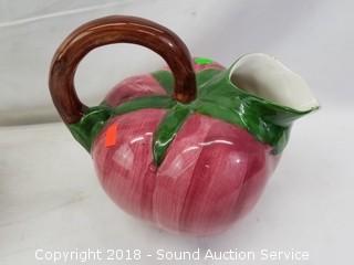 Lot #0187: Woven Italian Porcelain Basket & Apple Pitcher