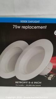 2-pack, fit 5-6" housings, 75 watt replacement, uses only 9.4 watts, 850 lumens, 5000k daylight color. Like new in original packaging.