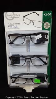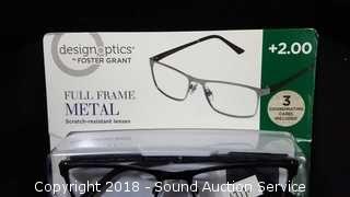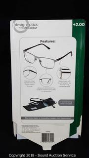 Lot #0373: Foster Grant +2.0 Full Frame Metal Reading Glasses