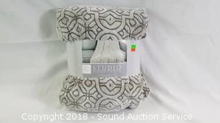 Lot #0247: Life Comfort Studio Plush Celtic Knot Grey Throw