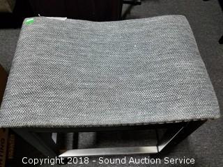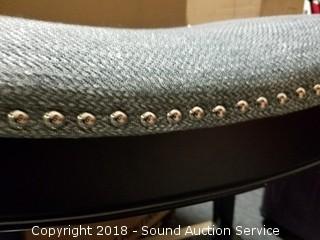 In excellent condition. Nail head accents. Weight capacity: 250lbs; Dimensions:20 inches wide x 14 inches deep x 27 inches high. Materials: Select hardwoods and plywood frame, birch legs.