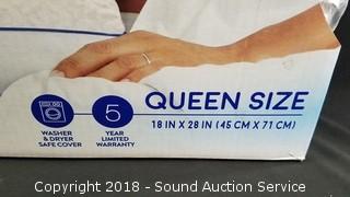 Queen size, 18" x 28", removable cover. Like new in original packaging.