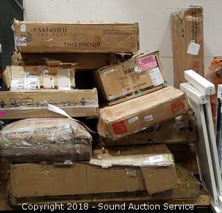 This auction consists of a variety of Retail & Overstock Store Returns, furniture, household, food, home improvement & more, most in original packaging. Be sure to read item descriptions for any imperfections, measurements, colors etc. Includes: Some Fantastic Chairs (Dining, Accent, Mid Century); Tables (Side, Dining, Cocktail, Console); Rugs (Area, Bathroom Kitchen, Entry); Lighting (Chandeliers, Vanity and Others); Comfort (Pillows, Blankets, Throws); Personal Hygiene Health & Beauty (Lotions, Razors, Shampoo Conditioner & More); Home Improvement (Replacement Faucets, Ceiling Fans, Fire Pits) and much, much more!