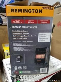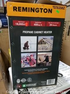Comes in original packaging, like new, appears to have never been used. 18,000 BTU, 450 sq. ft. Class-exclusive, front-locking castor wheels for stability Auto shut-off safety tip-over switch; Oxygen depletion sensor; Wind-resistant frame for any weather condition; Tough, diamond-tread design; Innovative, built-in tank caddy.