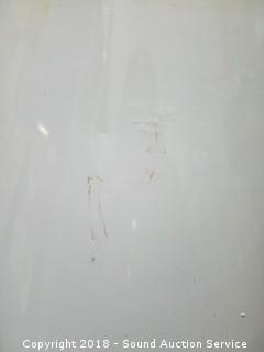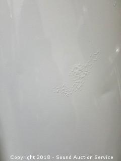 Has a scratch on the side. Some wear on the base from being in the box, not very noticeable. Still has original tag. Approx. 18" x 18" diameter.