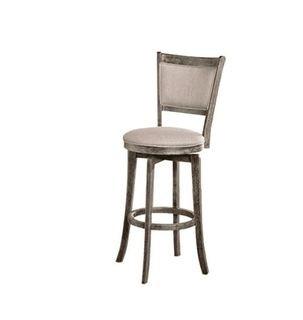 Simple Living French Country Grey Rubberwood/Fabric 30" Swivel Bar Stool. Comes in original packaging, complete, like new condition, some assembly required. Looks more black than grey in person. Measures 47 inches high x 17 inches wide x 17 inches deep.