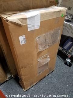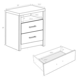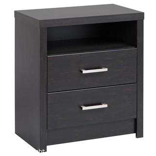 Comes in original box, like new condition, complete. Assembly required. Frame materials: Medium-density fiberboard/ composite wood; Finish: Black with brown undertones/laminate; Number of drawers: Two (2); Dimensions: 28 inches high 25 inches wide x 15.25 inches long.