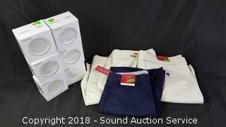 Includes: (6) 3" LED Retro Fit Trim Lights, 2700k color, 450 lumens, 8 watts. All come in original boxes. 2 NWT Mossimo Flat Front Shorts w/Belts - Size 38. 2 NWT Merona & Mossimo Flat Front Shorts - Size 28.