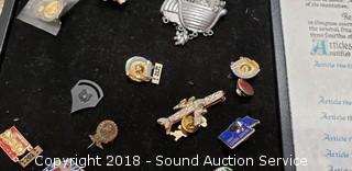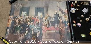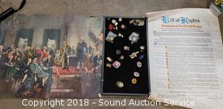 Lot #0419: Bill of Rights Replica & Various Pins