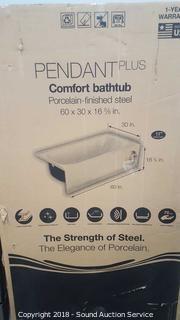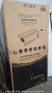 Lot #0015: Briggs Pendant Plus Porcelain Finish Steel Bathtub