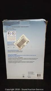 Olde bronze finish, clear wave glass. Like new in original packaging. 8.4 " x 9.2 " x 16.1".