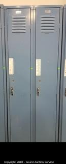You get 2 lockers. Has hanger hooks. Missing a rivet in the back. Some damage to the outside. Doors work good. Overall approx. 78" H, 24" W, 15" D.