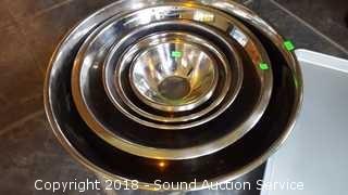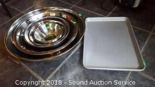 Lot #0358: 11 Stainless Mixing Bowls & 2 Baking Sheets
