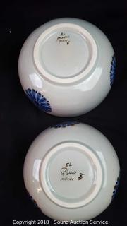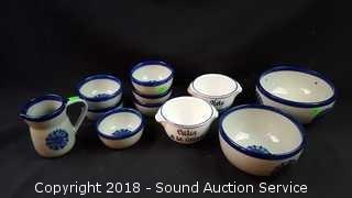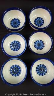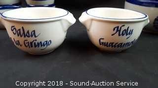 All are signed "El Palomar". Includes: (6) 4.5" bowls, (2) 7" bowls, 2 unmarked salsa bowls, and 4-1/2" pitcher.