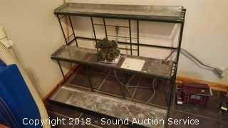Lot #0216: 3-Tier Metal Plant Stand w/Small Plant