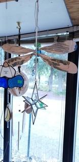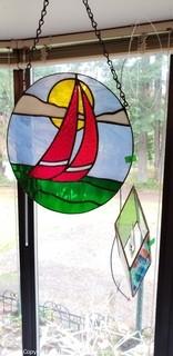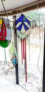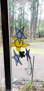 Stained glass, pottery windchime, and prisms. Approx. 7" to 32" L.