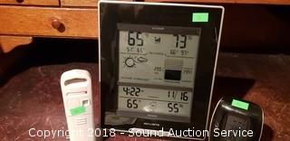 Thermometer is indoor/outdoor, comes with outdoor sensor. All work.