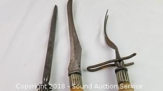 Can only make out writing on the honing rod, marked "Wolstenholme".