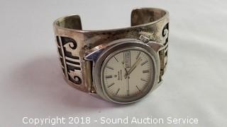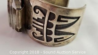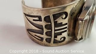 Lot #0277: A/S Navajo Sterling Cuff w/Bulova Wristwatch