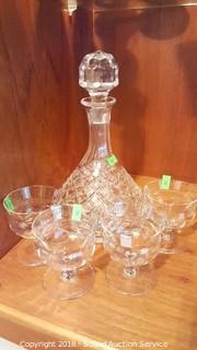 Lot #0194: Ceska Cut Crystal Decanter & 4 Small Glasses