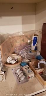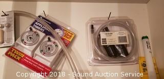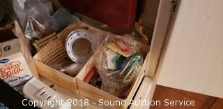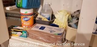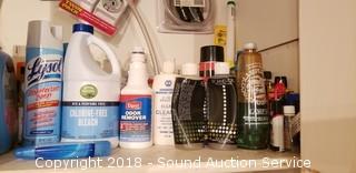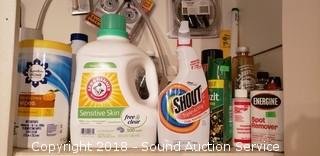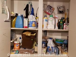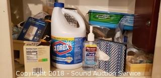 Includes: bleach, furniture polish, lamp oil, spot remover, laundry soap, 3-in-1 oil, fabric softener, dryer sheets, odor remover, Lysol, carpet cleaner, appliance timers, cleaning rags, disinfectant wipes, cleaning buckets, sponges, paper bags, flashlight, slide dimmer switch, lens wipes, light bulbs, and more.