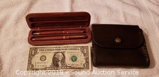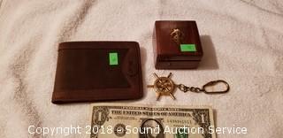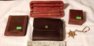 Lot #0054: Leather Wallet, Pouch, Pen Set & Nautical Keychain