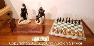 Lot #0094: Marble Chess Set & 2 Sets of Bookends