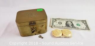 Lot #0322: Monogrammed Bone? Buttons & Trinket Box w/Lock