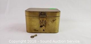 Trinket box is approx. 2-1/2" x 4" x 3", brass, monogrammed.