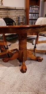 Lot #0075: Oak Claw Foot Dining Table w/4 Chairs