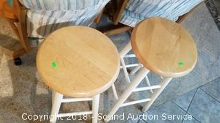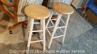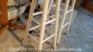 Lot #0144: Pair of 30" Wood Swivel Stools
