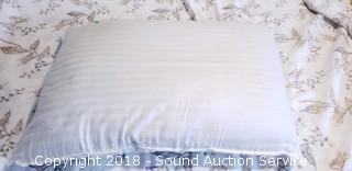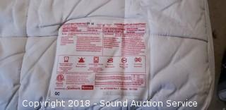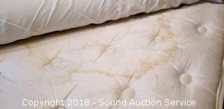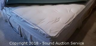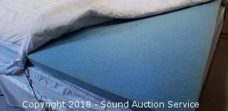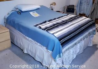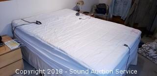 Includes: Sealy Posturepedic Danmar Plush mattress and box spring, metal bed frame on wheels, mattress cover, 2-1/2" thick memory foam topper, Sunbeam heated mattress pad, 4pc. floral flannel sheet set, bed skirt, 3 pillows, and 2 blankets.