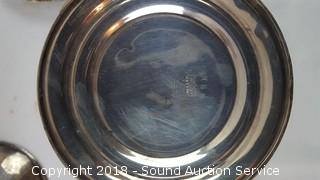 Lot #0187: Weighted Sterling Vase, Candle Holder & Coaster