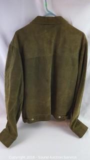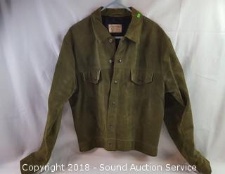 Dark green color. Button up, has 2 chest pockets, in good condition.
