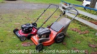 Lot #0412: Intek & Murray 21" Lawn Mowers & Wheelbarrow