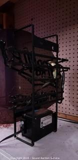 Works. Has basket and netting. Approx. 18" H, 24" W, 13" D.
