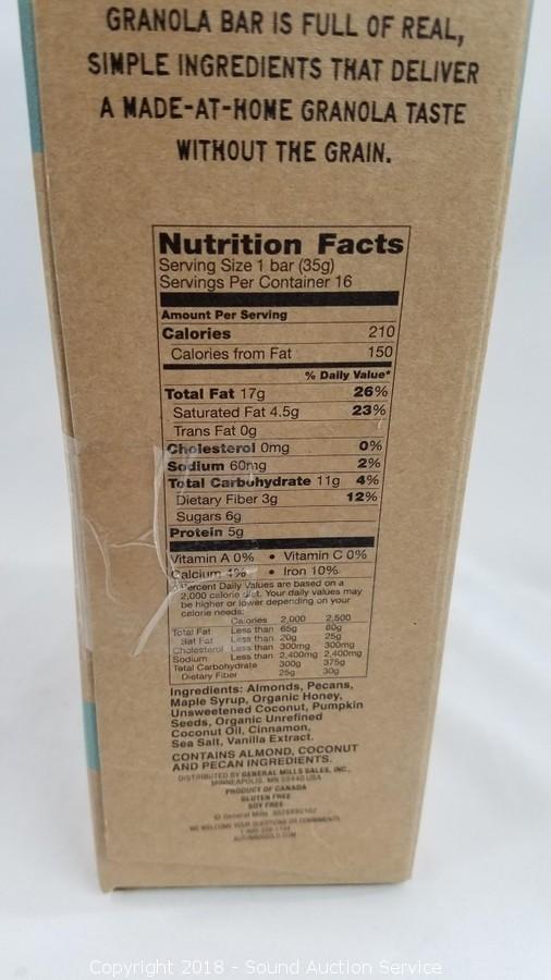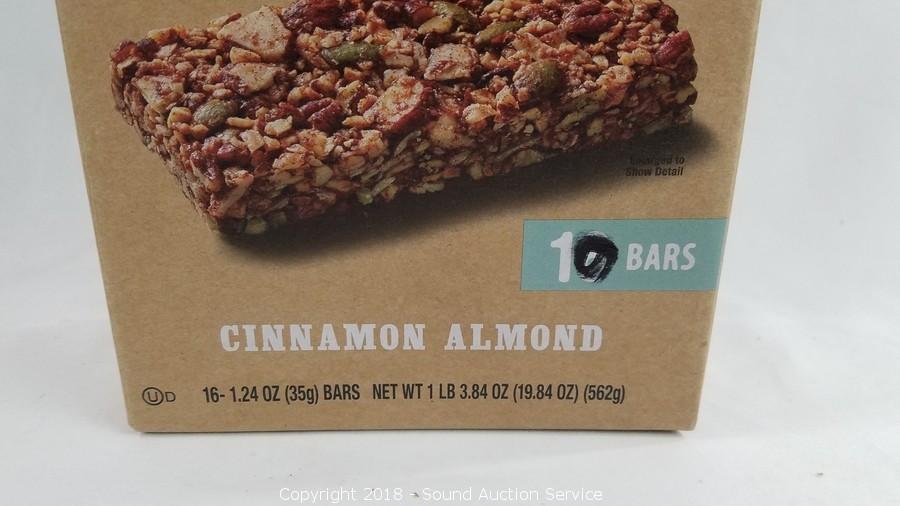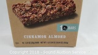 1.24oz bars. Cinnamon almond flavor. Grain free, gluten free, non-GMO. Best by April 2019.