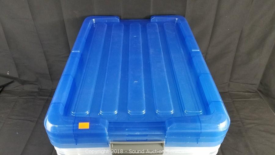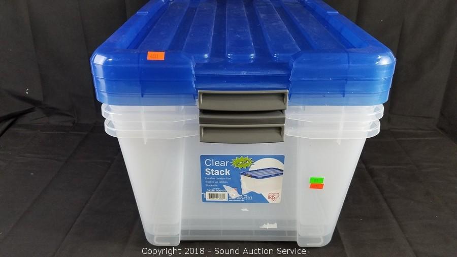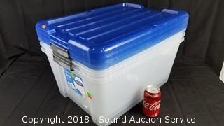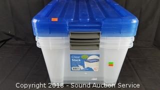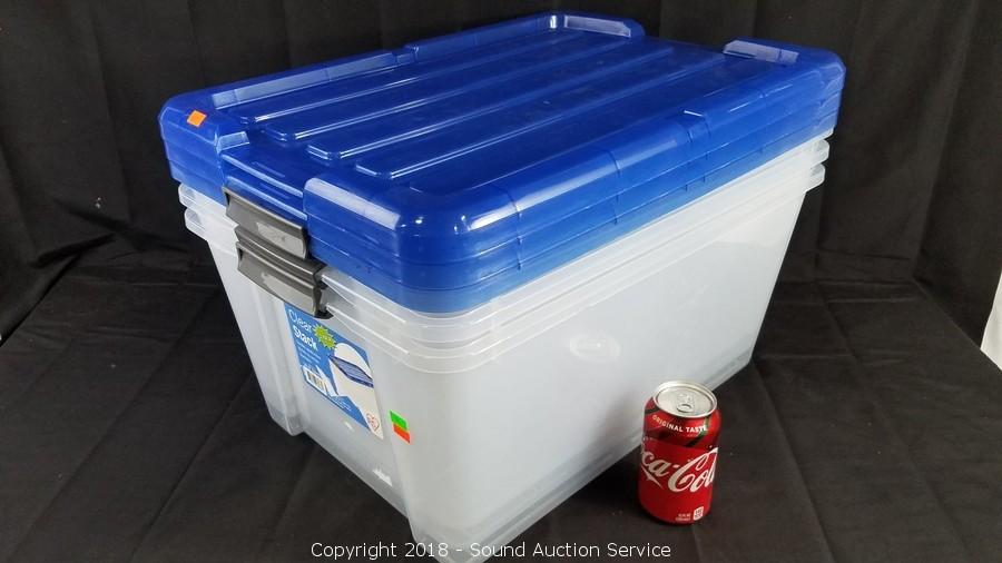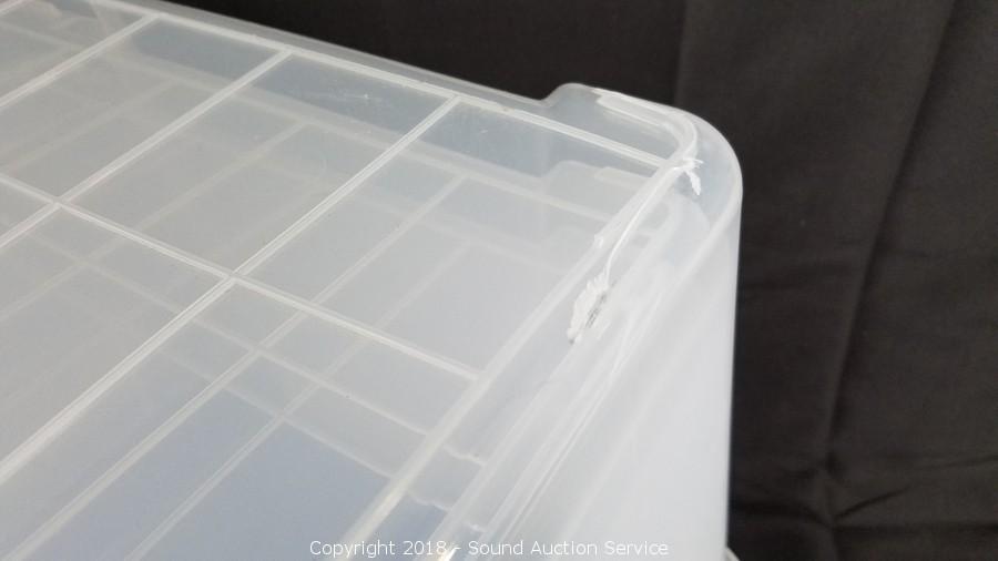 Lot #0185: (3) 45qt Clear Plastic Totes w/Lids