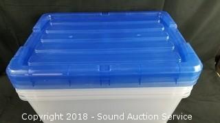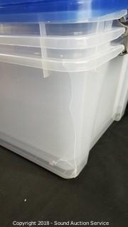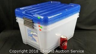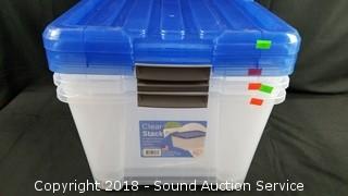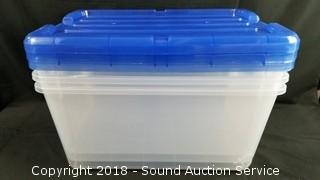 Lot #0310: (3) 45Qt Clear Stackable Plastic Storage Totes