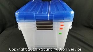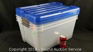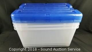 Lot #0267: (3) 45QT Clear Stackable Storage Totes w/Lids
