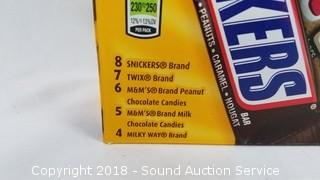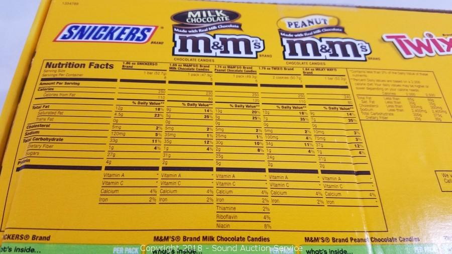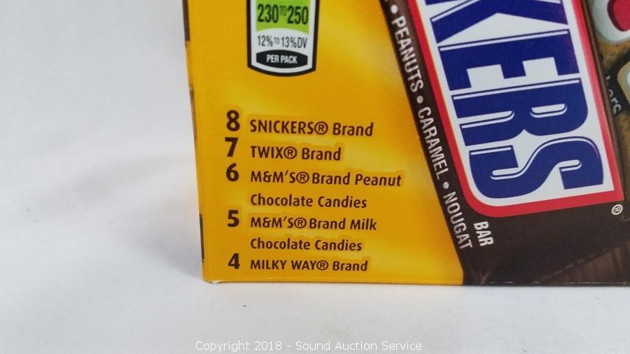 Includes: Snickers, Twix, Milky Way, and M&M's.