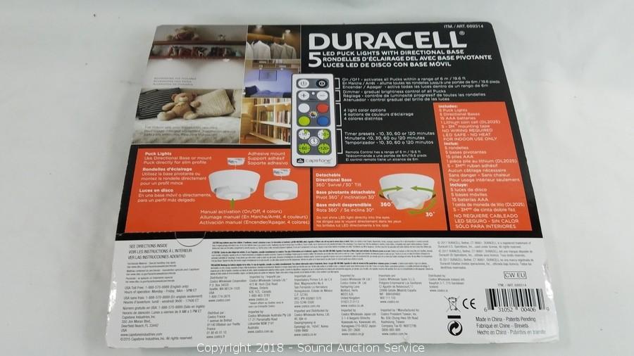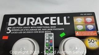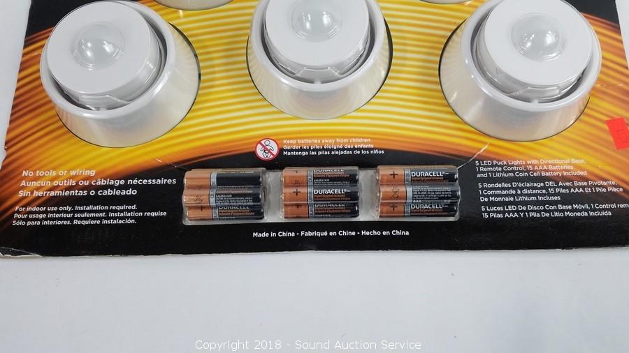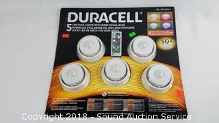 Lot #0124: 5pk Duracell LED Puck Lights w/Directional Bases