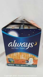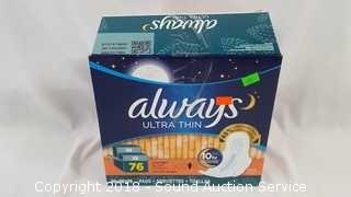 Lot #0222: 76ct Always Ultra Thin Overnight Pads